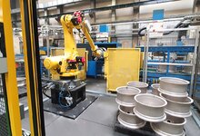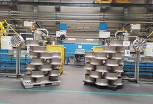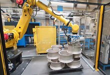 Robotic line for depalletizing of aluminium wheels for machining centers.